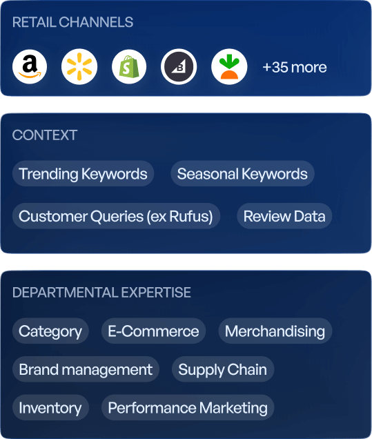 Through our Google Gemini partnership, automate cataloging and benchmark your content strength against category leaders while generating SEO-optimized titles, bullets, and descriptions using data from ads, search queries, competitors, and customer reviews.
